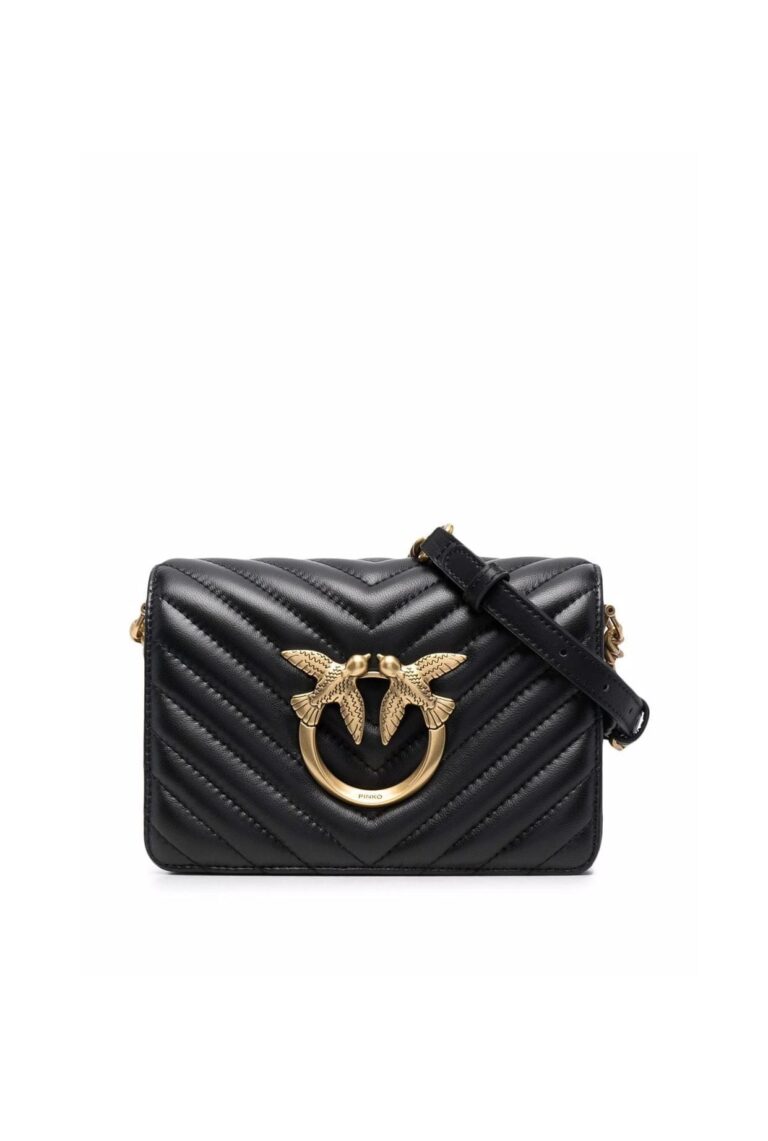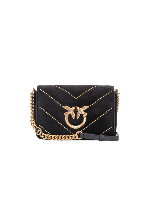 MINI LOVE BAG CLICK IN VELVET WITH STUDS — black