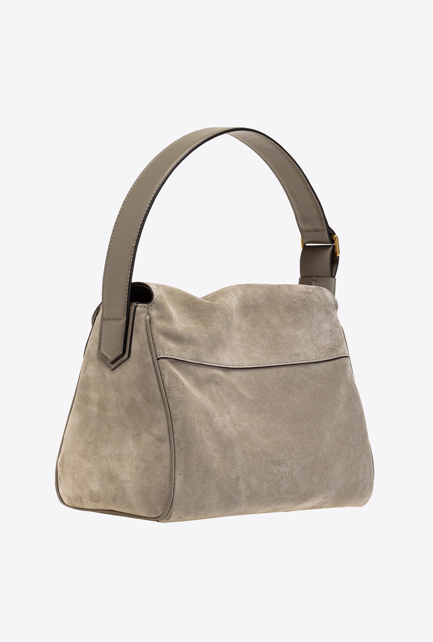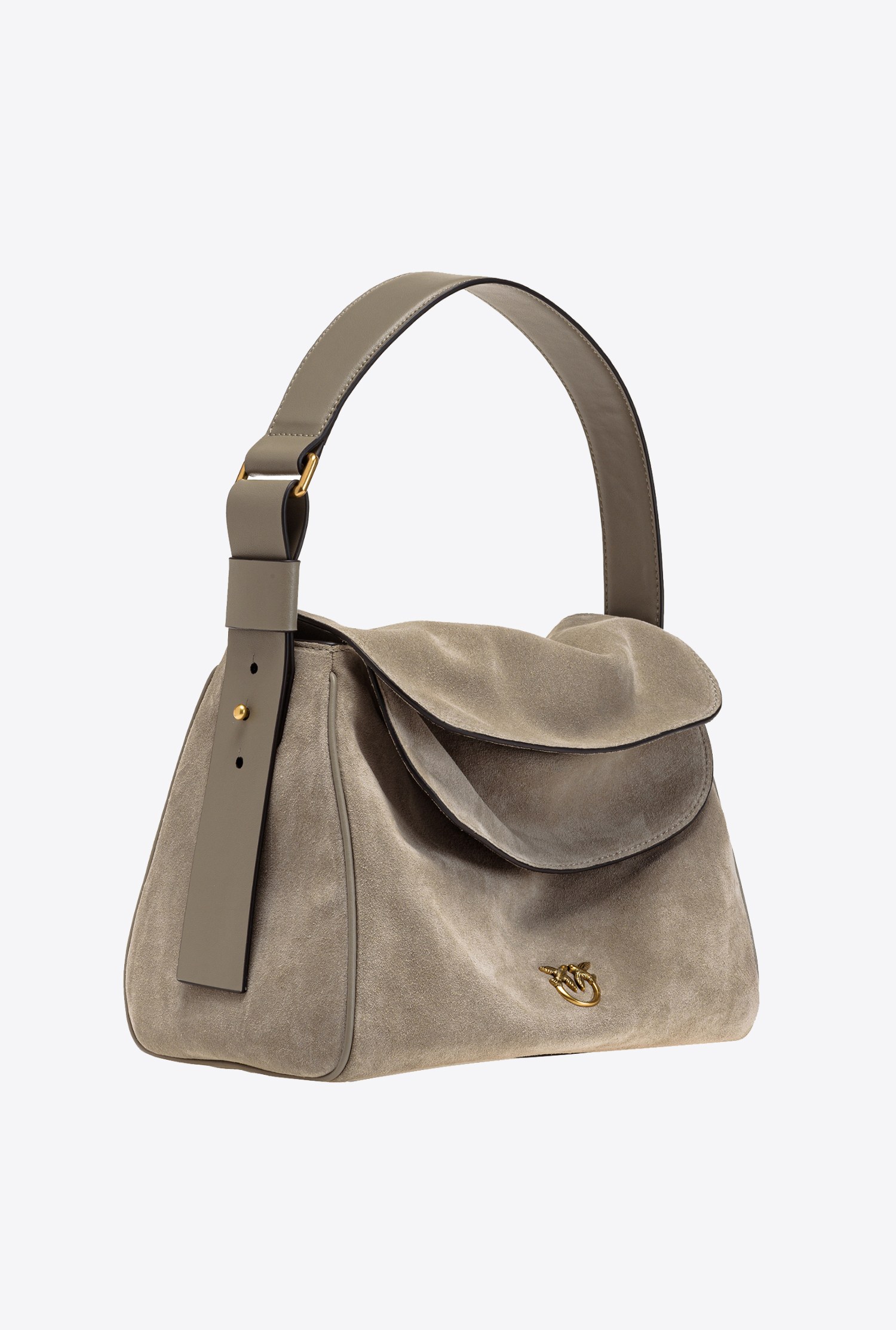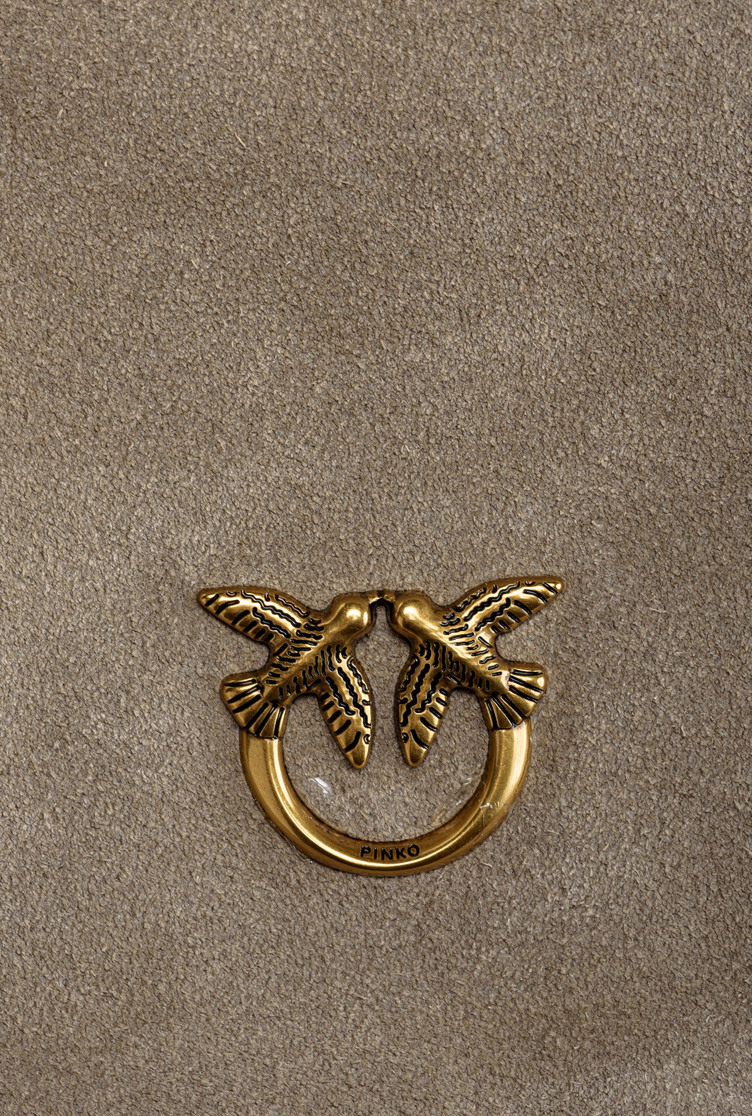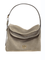 Сумка Big Leaf Bag из замшевой кожи с типичной мягкой формой, на заказ с отделкой Love Birds Diamond Cut спереди.#nbsp;Застежка характеризуется двойным клапаном, который можно «пролистать», и дополняется небольшим внутренним крючком.#nbsp;Внутренняя отделка выполнена из микрофибры с эффектом замши и включает в себя закрытый настенный карман на молнии.#nbsp;Регулируемая кожаная ручка с верхней ручкой.#nbsp;Активируйте свою сумку PINKO: проверьте подлинность своего продукта и получите доступ к персонализированному опыту, приблизив свой смартфон к вышивке Love Birds, которую вы найдете на задней части сумки!
