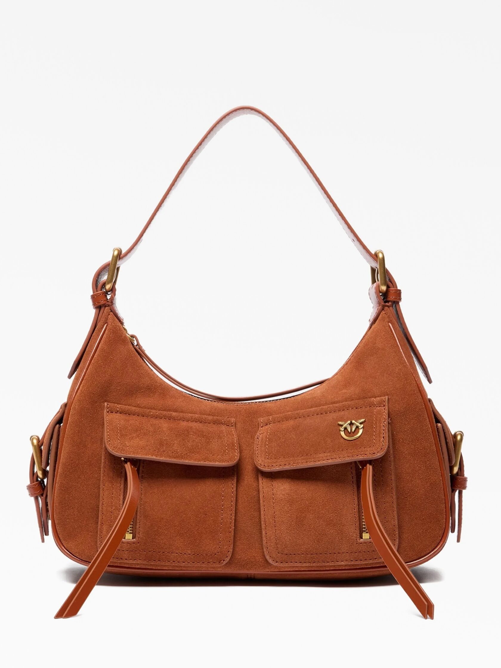 Сумка-карго с несколькими карманами из замши.#nbsp;Удлиненная форма и практичные карманы с клапанами спереди и сбоку.#nbsp;Украшена металлической табличкой с логотипом Love Birds бриллиантовой огранки.#nbsp;Ремешки из регенерированной кожи, застежка-молния и ручка для ношения на плече.#nbsp;Подкладка из переработанной ткани.#nbsp;Активируйте свою сумку PINKO: подтвердите подлинность вашего товара и получите доступ к персонализированному сервису, отсканировав вышивку с птицами любви на обратной стороне сумки с помощью смартфона!