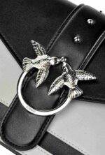 Сумка Love Bag из мягкой шелковистой кожи со вставками, с декоративными эффектами, создаваемыми сочетанием двух цветов. Застежка с кожаным фальш-ремнем и маленькими металлическими заклепками снабжена легендарной пряжкой из металла с ласточками Love Birds. Внутри сумка обшита подкладкой из ткани с эффектом кожи и снабжена карманом-перегородкой на молнии с подвеской, украшенной фирменным декором-заклепкой в виде ласточки, и кожаным карманом на стенке. Плечевой ремень длиной 110 см представляет собой комбинацию классической цепочки из металла и практичного кожаного наплечника. Проверьте подлинность своей Love Bag при помощи особого NFC-чипа.
