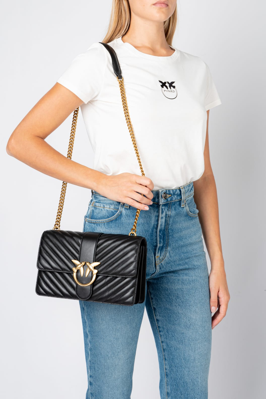 Классическая сумка Love Bag Icon из кожи наппа с отстрочкой и узором в виде шеврона. Застежка украшена легендарной пряжкой Love Birds Diamond Cut. Аксессуар имеет внутреннее отделение на подкладке из микрофибры, центральный разделительный карман на молнии и кожаный накладной карман. Съемный плечевой ремень сочетает в себе классическую цепочку с круглым звеном и практичную кожаную накладку на плечо.#nbsp;