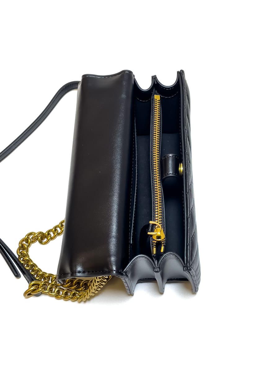 Сумка Classic Love Bag Icon из мягкой шелковистой кожи. Застежка с кожаным ремешком и заклепками украшена легендарной пряжкой Love Birds Diamond Cut из металла. Внутреннее отделение на подкладке из микрофибры дополнено карманом-перегородкой на молнии и плоским карманом из кожи. Съемный плечевой ремень длиной 110 см представляет собой комбинацию классической цепочки с круглыми звеньями и практичного регулируемого наплечника из кожи.
