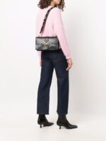 Сумка Classic Love Bag Icon из мягкой шелковистой кожи. Застежка с кожаным ремешком и заклепками дополнена легендарной пряжкой Love Birds Diamond Cut из металла с гальваническим покрытием цвета античного золота. Внутреннее отделение на подкладке из микрофибры включает карман-перегородку на молнии и плоский карман из кожи. Плечевой ремень из кожи украшен ювелирными буквами, образующими фразу PINKO TI AMO.