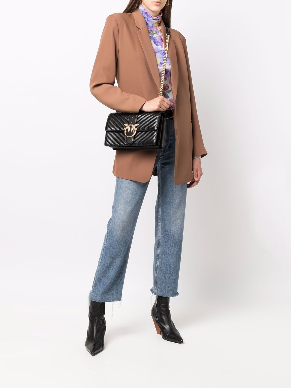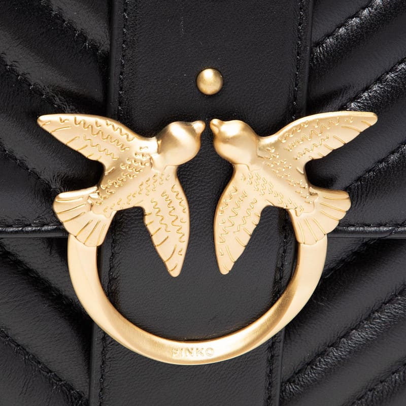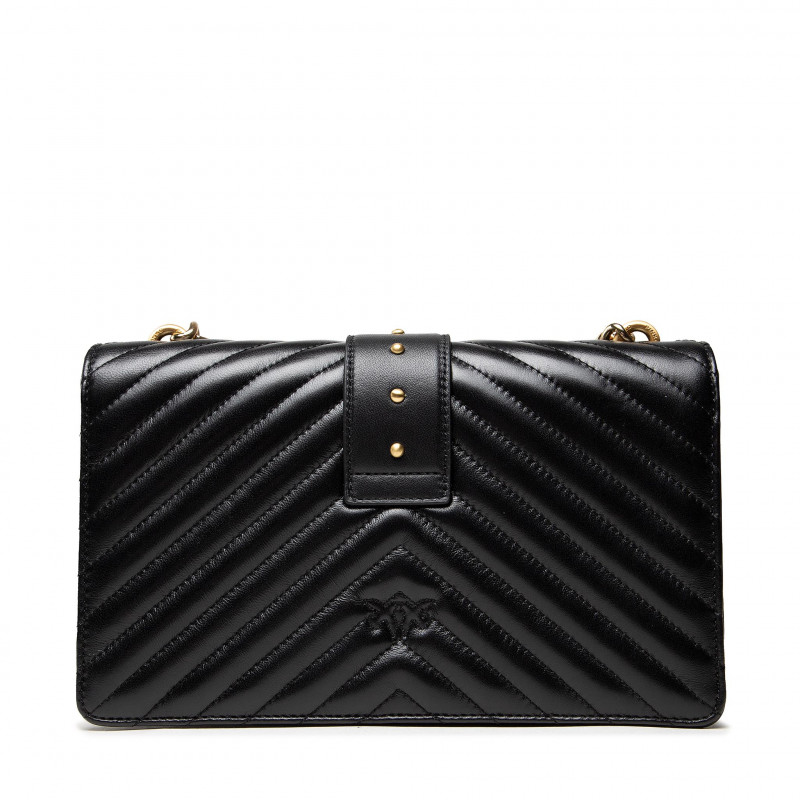 Сумка Classic Love Bag из кожи наппа с простежкой шеврон. Застежка с кожаным ремнем-обманкой дополнена легендарной металлической пряжкой Love Birds с гальваническим покрытием «античное золото». Внутри сумка обшита подкладкой из микрофибры, разделена карманом-перегородкой на молнии с подвеской с фирменным декором-заклепкой в виде ласточки и снабжена кожаным карманом на стенке. Плечевой ремень длиной 110 см представляет собой комбинацию классической металлической цепочки с круглыми звеньями и практичного наплечника из кожи наппа.