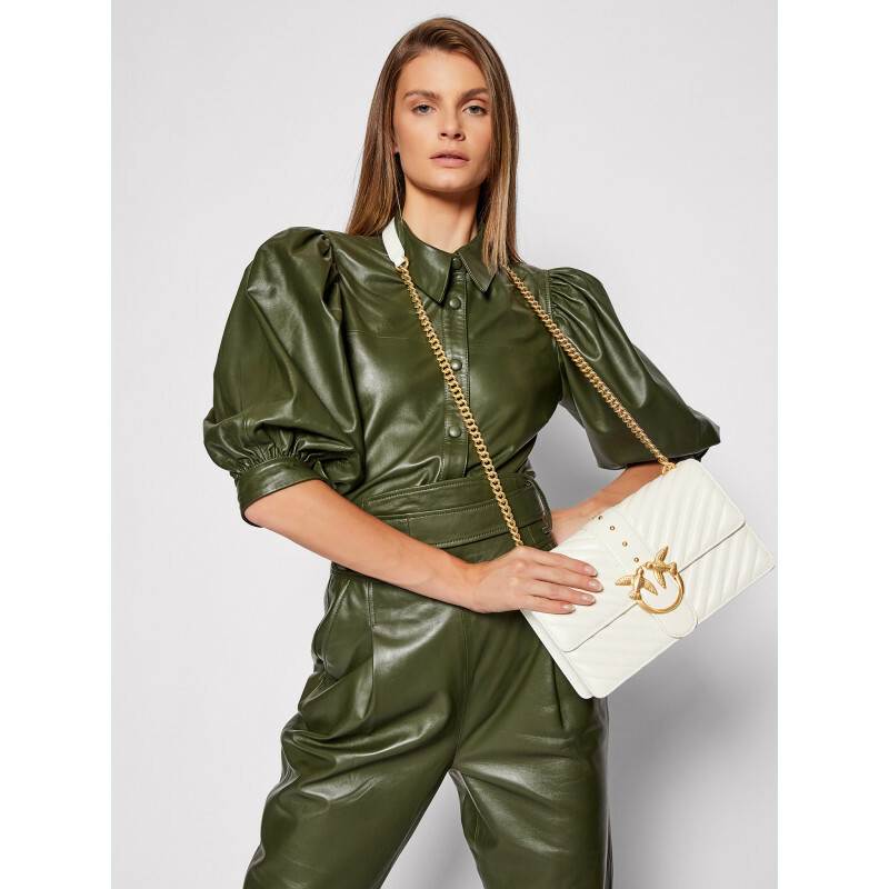 Сумка Classic Love Bag из кожи наппа с простежкой шеврон. Застежка с кожаным ремнем-обманкой дополнена легендарной металлической пряжкой Love Birds с гальваническим покрытием «античное золото». Внутри сумка обшита подкладкой из микрофибры, разделена карманом-перегородкой на молнии с подвеской с фирменным декором-заклепкой в виде ласточки и снабжена кожаным карманом на стенке. Плечевой ремень длиной 110 см представляет собой комбинацию классической металлической цепочки с круглыми звеньями и практичного наплечника из кожи наппа.