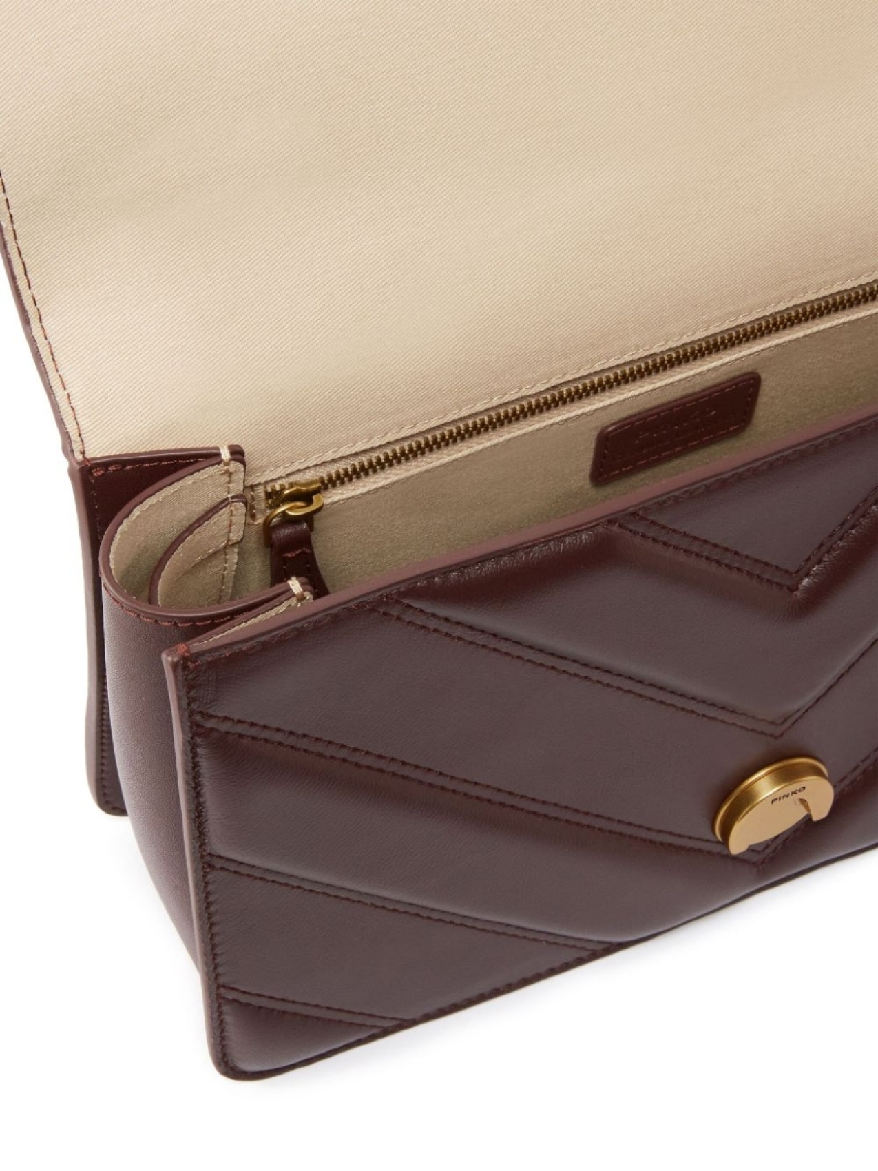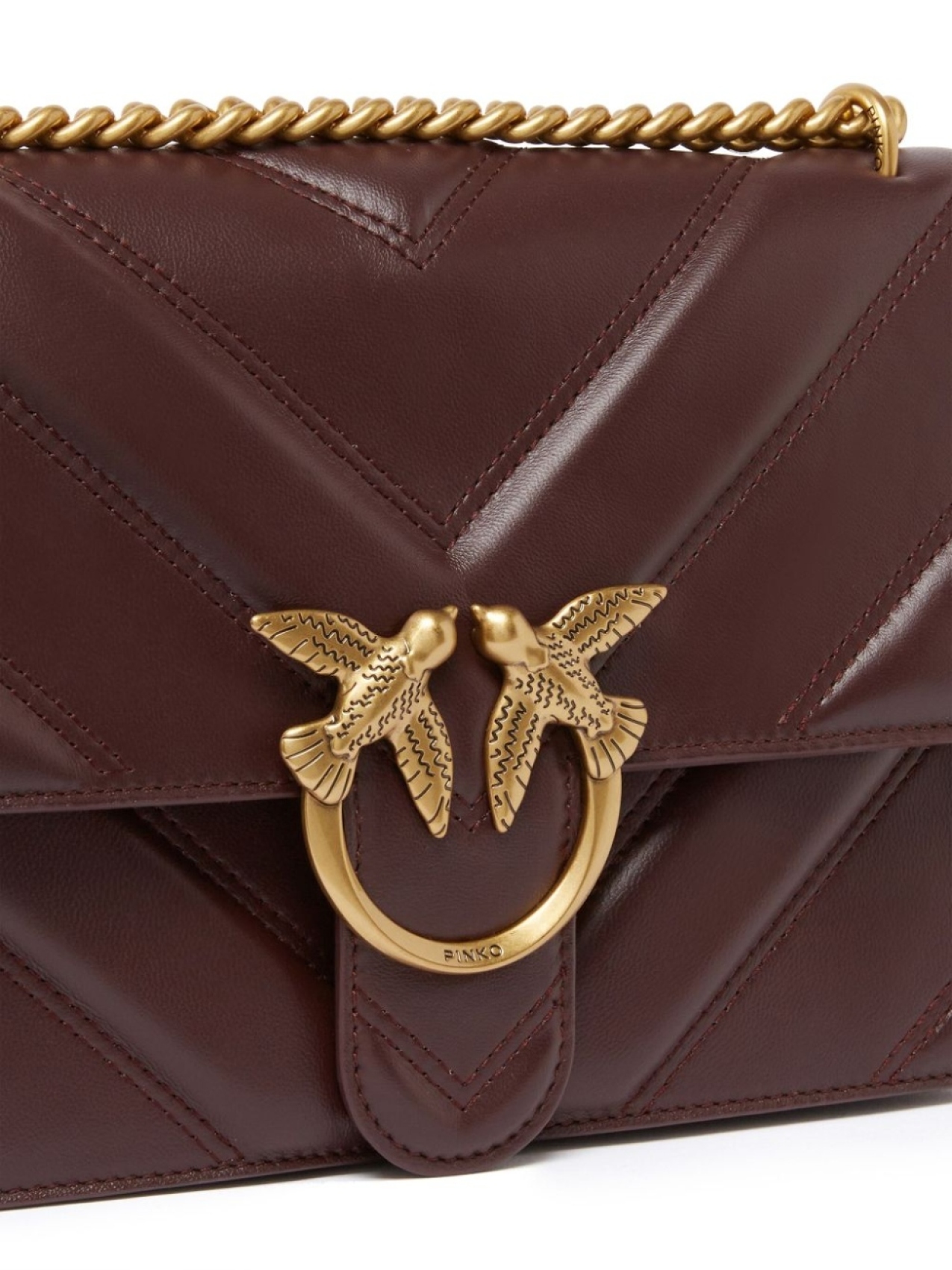 Большая сумка кросс-боди Love Bag из кожи наппа отличается рельефными интарсиями, создающими эффект V-образного стеганого шевронного узора. Скользящий плечевой ремень, представляющий собой комбинацию классической металлической цепочки и кожаного наплечника, можно сложить вдвое, чтобы носить аксессуар на плече или через плечо. Внутреннее отделение на подкладке из хлопкового тика дополнено плоским карманом на молнии. Модель полужесткой конструкции идеально подходит на каждый день. Фирменная пряжка в виде птиц Love Birds добавляет культовый штрих одной из ключевых моделей новой коллекции. Активируй свою сумку PINKO: поднеси смартфон к вышитому на задней стенке логотипу Love Birds, чтобы проверить подлинность изделия и получить доступ к персонализированным функциям!