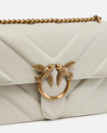 Большая сумка кросс-боди Love Bag из кожи наппа отличается рельефными интарсиями, создающими эффект V-образного стеганого шевронного узора. Скользящий плечевой ремень, представляющий собой комбинацию классической металлической цепочки и кожаного наплечника, можно сложить вдвое, чтобы носить аксессуар на плече или через плечо. Внутреннее отделение на подкладке из хлопкового тика дополнено плоским карманом на молнии. Модель полужесткой конструкции идеально подходит на каждый день. Фирменная пряжка в виде птиц Love Birds добавляет культовый штрих одной из ключевых моделей новой коллекции. Активируй свою сумку PINKO: поднеси смартфон к вышитому на задней стенке логотипу Love Birds, чтобы проверить подлинность изделия и получить доступ к персонализированным функциям!