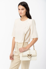 Эта сумка от PINKO из гладкой кожи украшена каменными заклепками и фирменной золотистой табличкой бренда.#nbsp;Благодаря структурированному силуэту он имеет разделенное отделение для оптимального использования.