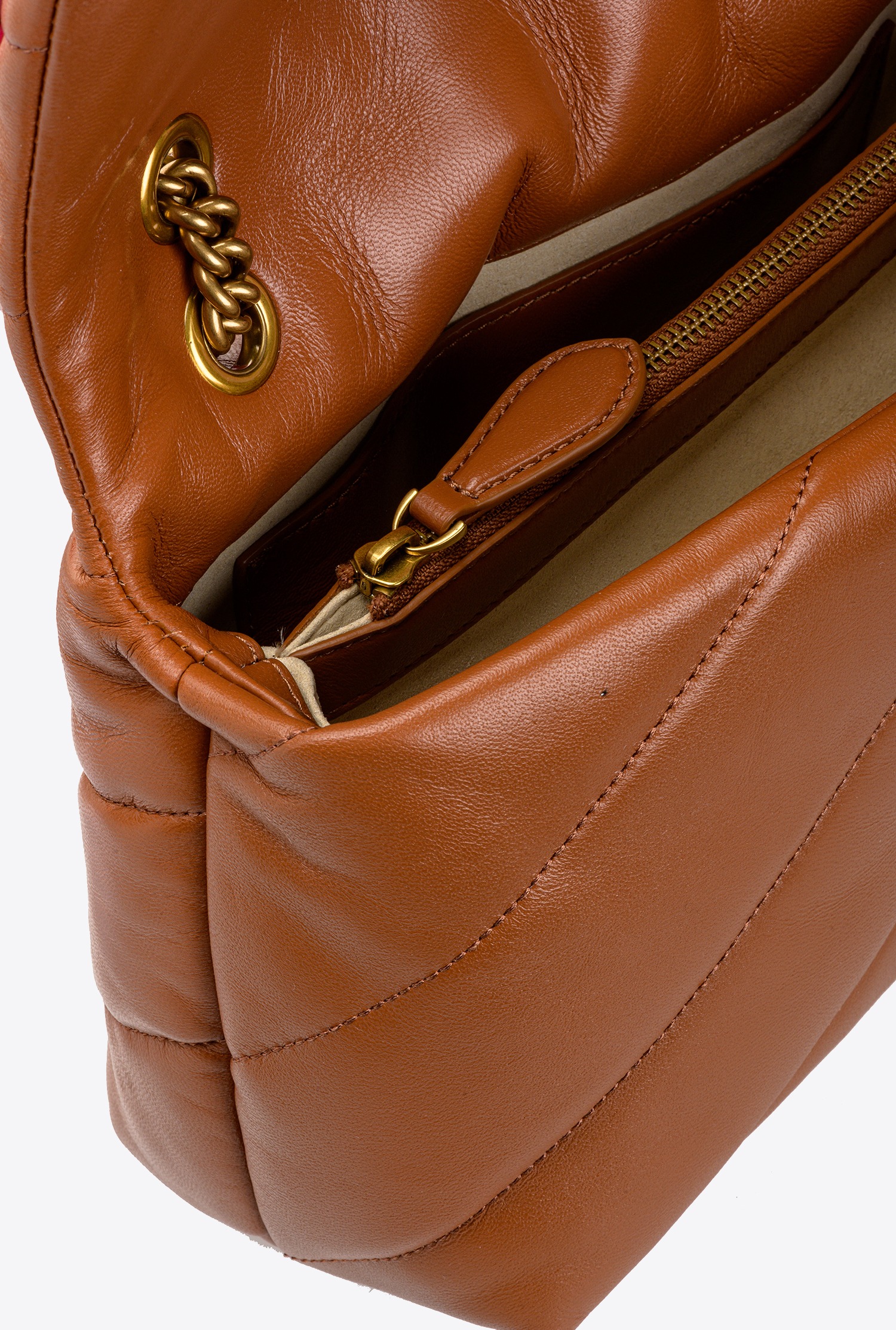 CLASSIC LOVE BAG PUFF MAXI QUILT — brown gold