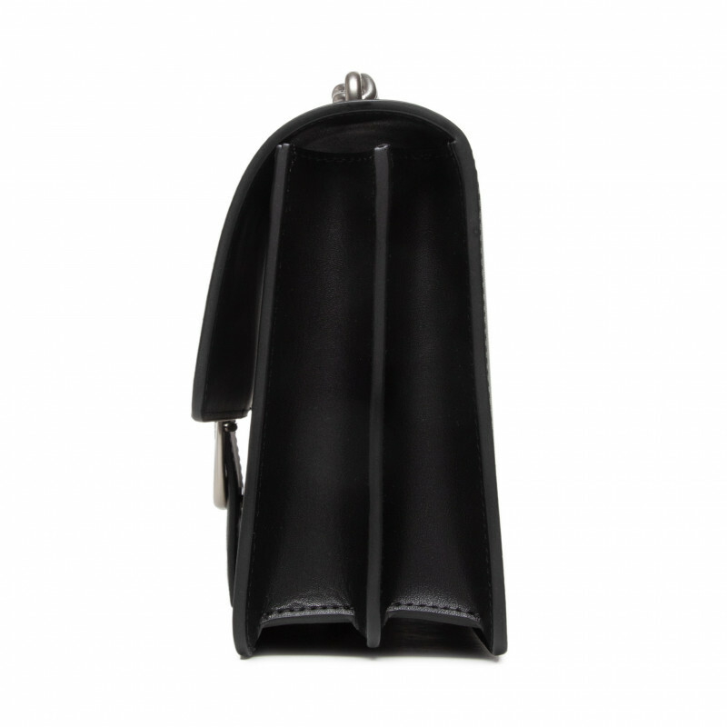 Сумка Classic Love Bag Icon из мягкой шелковистой кожи. Застежка с кожаным ремешком и заклепками украшена легендарной пряжкой Love Birds Diamond Cut из металла. Внутреннее отделение на подкладке из микрофибры дополнено карманом-перегородкой на молнии и плоским карманом из кожи. Съемный плечевой ремень длиной 110 см представляет собой комбинацию классической цепочки с круглыми звеньями и практичного регулируемого наплечника из кожи.