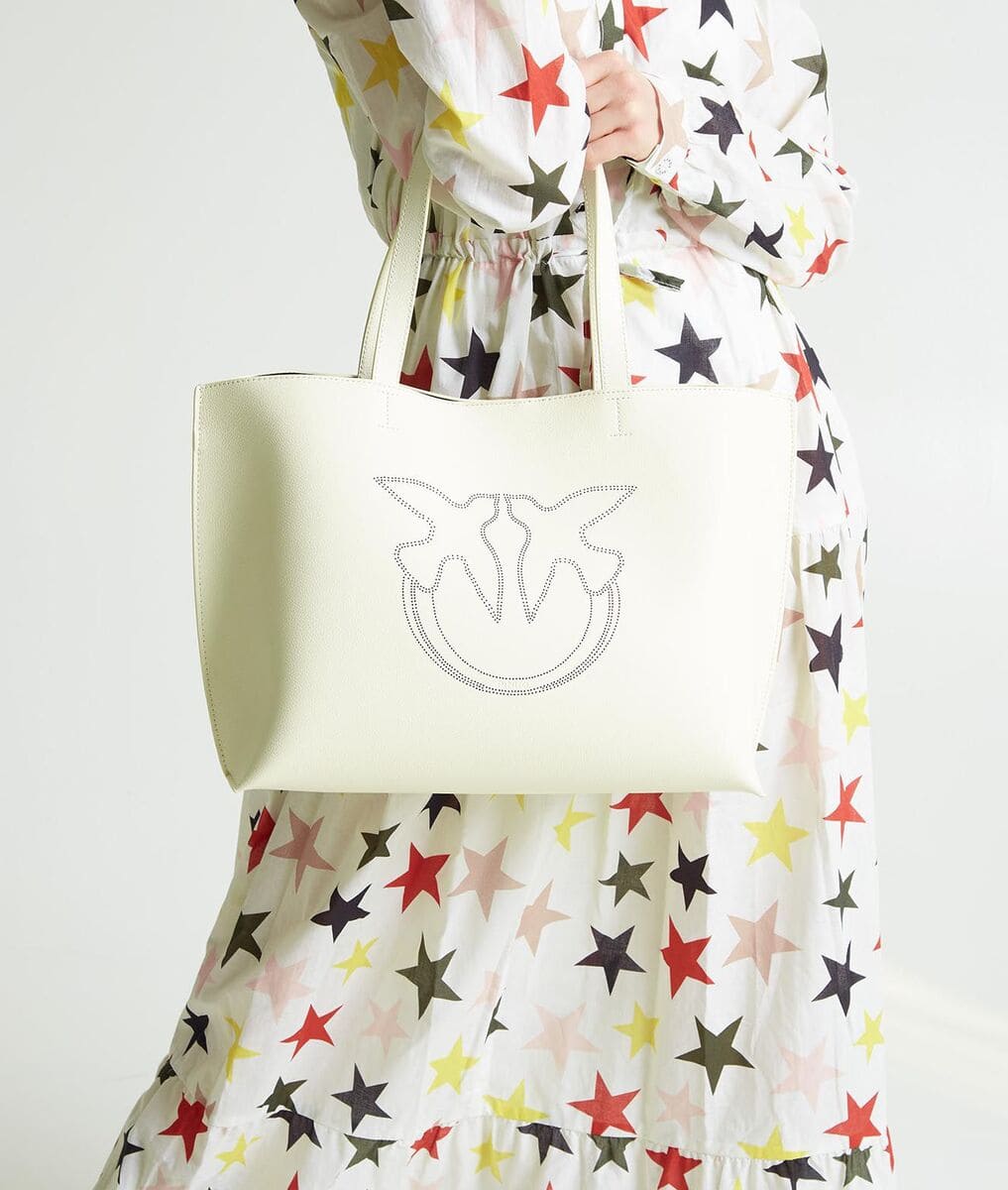 Сумка-шоппер Everyday квадратной формы из тисненой кожи с лазерной гравировкой в виде крупного логотипа Love Birds спереди. Две скругленные ручки. Съемный регулируемый ремень на плечо, потайная застежка на магните и основное отделение. Фурнитура из металла с блестящим гальваническим покрытием цвета никеля.
