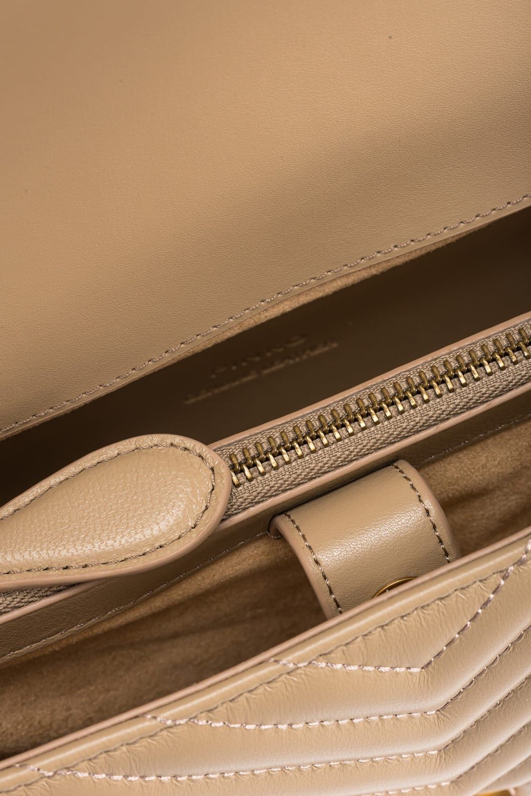 Классическая сумка Love Bag Puff из стеганой кожи наппа с шевронным рисунком. Застежка украшена легендарной металлической пряжкой Love Birds Diamond Cut. Аксессуар имеет внутреннюю часть с подкладкой из микрозамши, дополненную центральным разделительным карманом на молнии и накладным карманом. Плечевой ремень сочетает в себе классическую круглую металлическую цепочку с практичной регулируемой накладкой из кожи наппа.