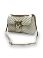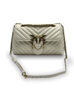 Сумка Lady Love Bag Puff из кожи наппа с отстрочкой и шевронным узором. Застежка украшена легендарной металлической пряжкой Love Birds Diamond Cut. Аксессуар имеет внутреннее отделение на подкладке из микрофибры, центральный разделительный карман на молнии и накладной карман. Кожаная верхняя ручка и плечевой ремень, сочетающий в себе классическую круглую металлическую цепочку с практичной накладкой на плечо из кожи наппа.