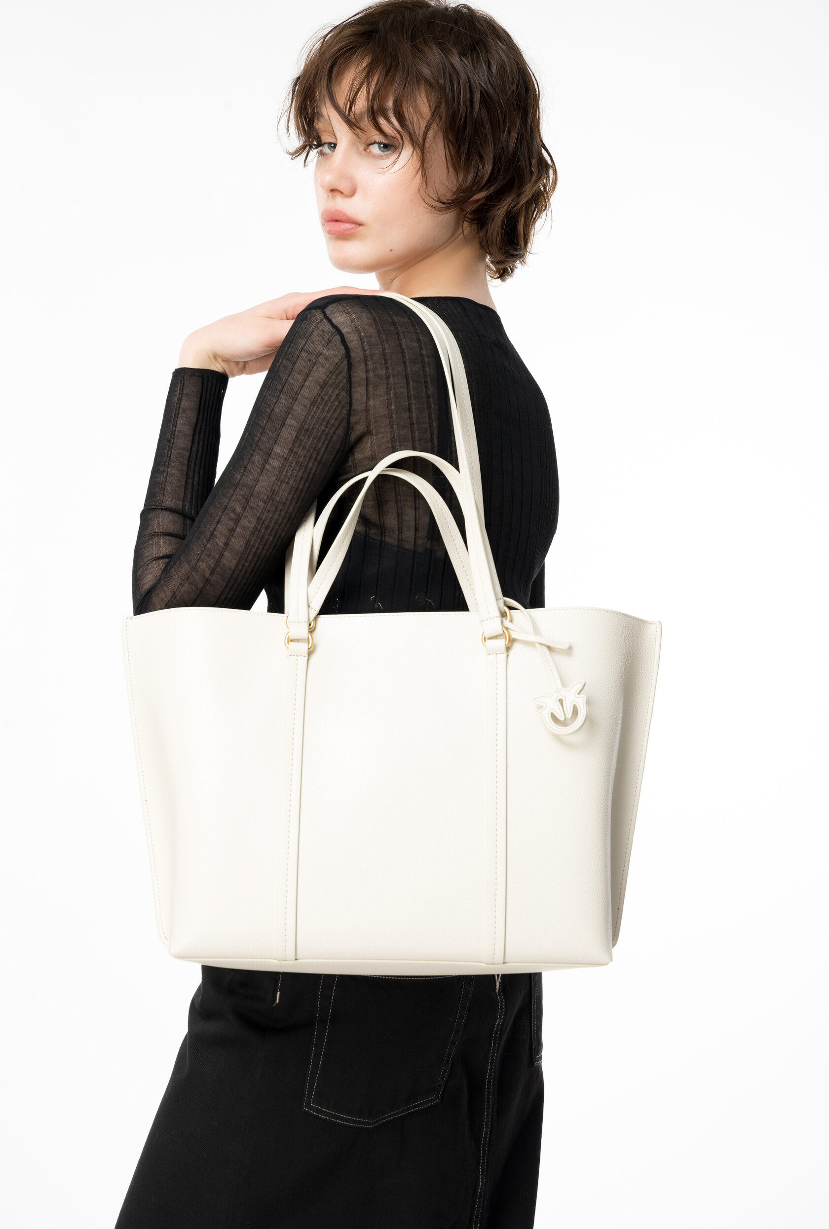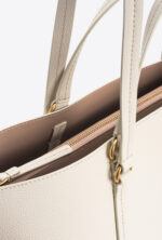 Классическая сумка для покупок из тисненой кожи.#nbsp;Кожаные ручки с фирменным шармом и съемным регулируемым плечевым ремнем выполнены по индивидуальному заказу.#nbsp;Активируйте свою сумку PINKO: подтвердите подлинность вашего товара и получите доступ к персонализированному сервису, отсканировав вышивку в виде птиц любви на обратной стороне сумки с помощью смартфона!
