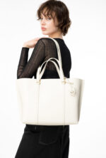 LARGE TUMBLED LEATHER SHOPPER BAG — white