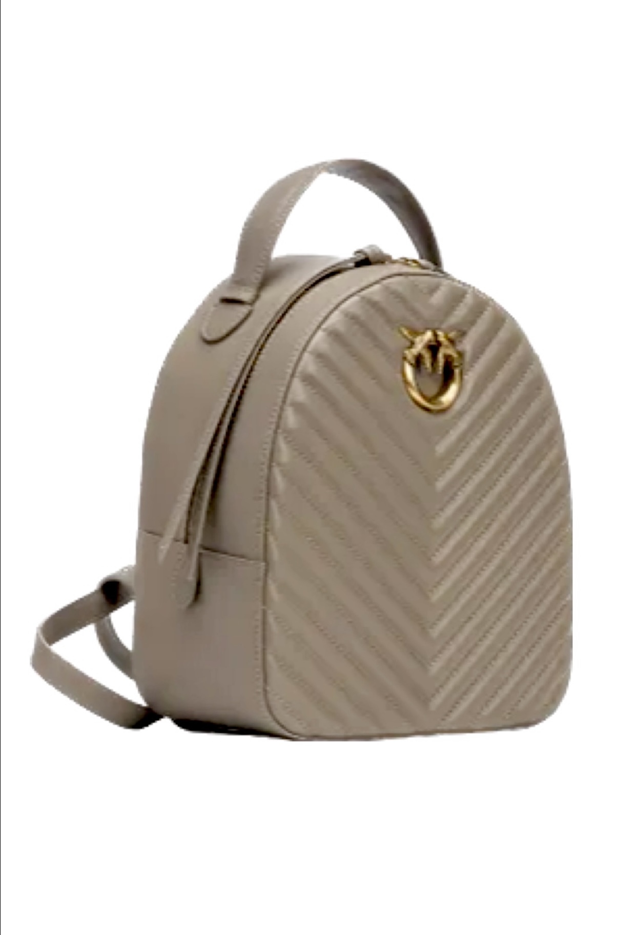 Рюкзак из гладкой стеганой кожи с мотивом в елочку, дополненный пряжкой Love Birds Diamond Cut спереди. Ручка сверху и регулируемые лямки из кожи. Застежка-молния с двумя бегунками.