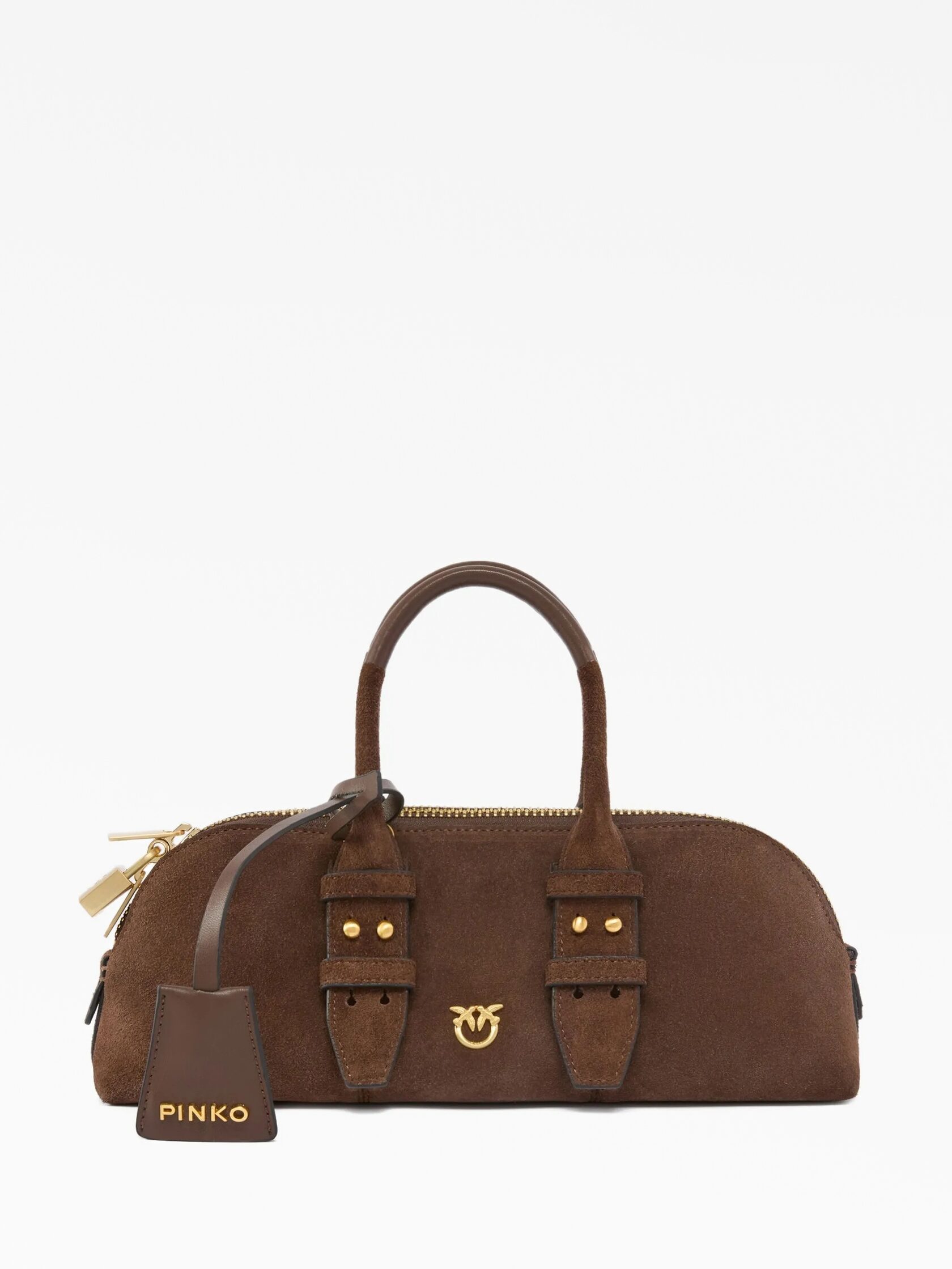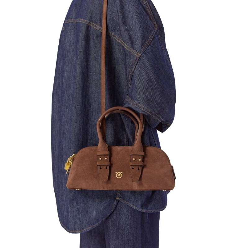 Pinko Bowling Baguette — это элегантная сумка из замши с отделкой из гладкой шелковистой кожи, выполненная в удлиненном прямоугольном силуэте.