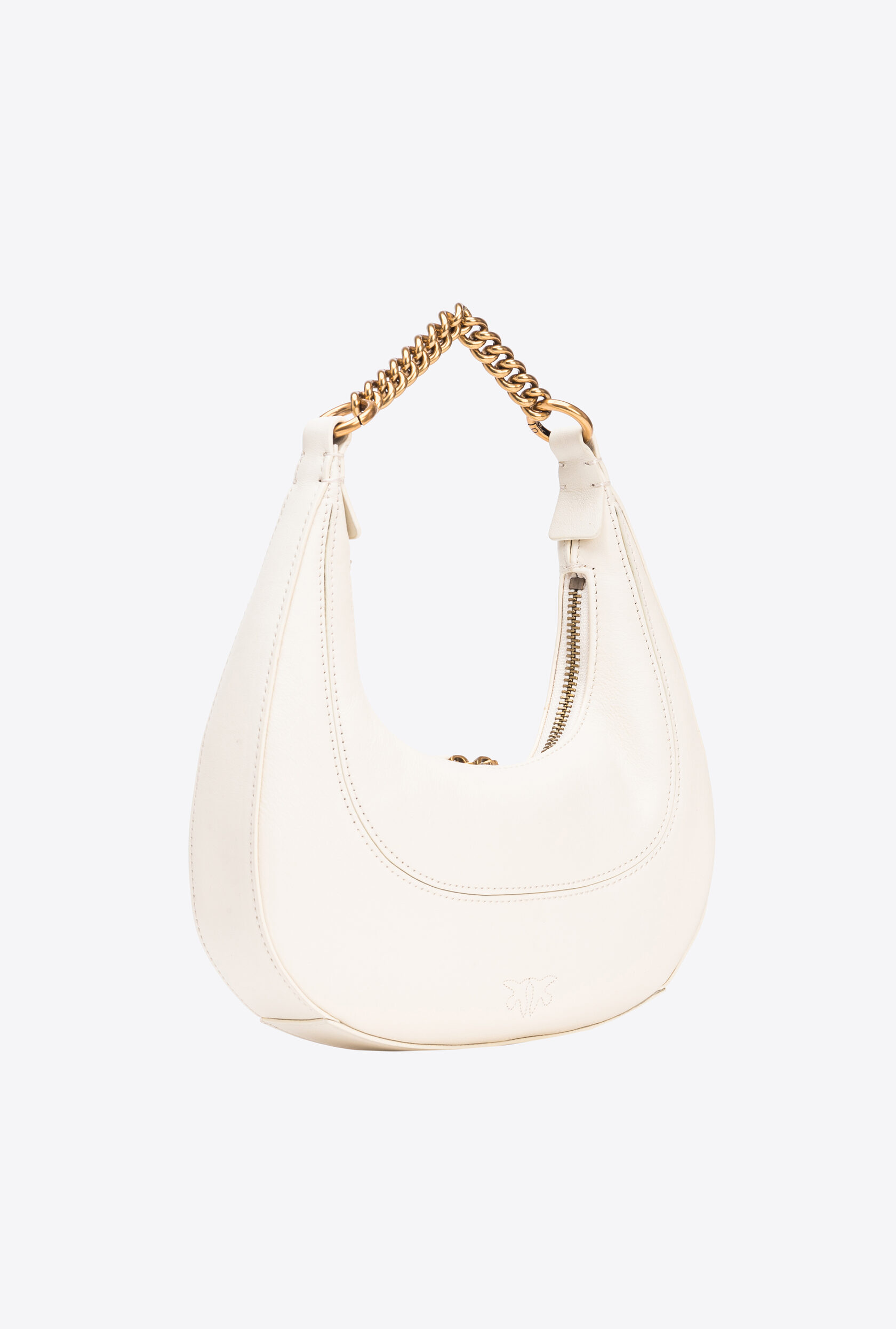 Сумка-бриошь Hobo из мягкой кожи характерной мягкой формы полумесяца. Украшен антикварной позолоченной пластинкой Love Birds Diamond Cut с гальваническим покрытием и верхней ручкой на металлической цепочке. Внутренняя отделка из микрозамши. Застежка-молния. Активируйте свою сумку PINKO: проверьте подлинность вашего продукта и получите персонализированный опыт, отсканировав вышивку Love Birds на задней стороне сумки с помощью смартфона!