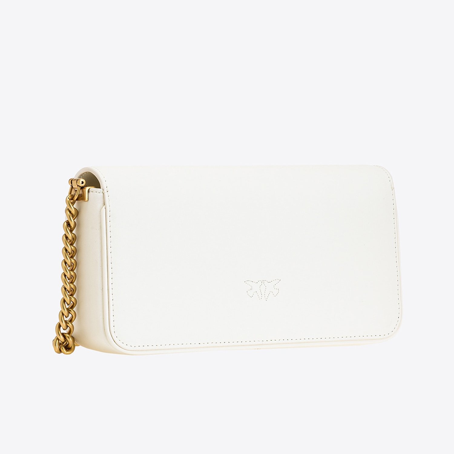 Сумка Pinko Mini Love Bag Click Baguette удлиненного силуэта из мягкой бархатистой кожи белого цвета. Пряжка золотистого оттенка с влюбленными ласточками Love Birds украшает застежку. Ремешок состоит из цепочки и удобного кожаного наплечника.Сумка Пинко украсит как дневной, так и вечерний образ.