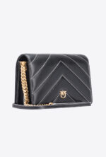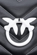Сумка Mini Love Bag Click из кожи наппа отличается крупным стеганым шевронным узором. Застежку на потайную кнопку украшает легендарная металлическая пряжка Love Birds Diamond Cut с декоративным вырезом. Строчки и пряжка окрашены в контрастный или противоположный сумке оттенок. Внутреннее отделение на подкладке из замшевой микрофибры дополнено карманом-перегородкой на молнии и плоским карманом из кожи. Плечевой ремень представляет собой комбинацию классической цепочки с круглыми звеньями и практичного регулируемого наплечника из кожи. Сумка представлена в специальной капсульной коллекции Limited Edition, выпущенной ограниченным тиражом эксклюзивно для PINKO Galleria. Благодаря специальному NFC-чипу ты сможешь испытать новую уникальную функцию, посвященную приобретенной тобой сумке!