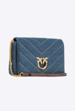 Сумка Mini Love Bag Click выполнена из денима со стеганым шевронным узором и декором из миниатюрных заклепок. Застежку на потайную кнопку украшает легендарная пряжка Love Birds Diamond Cut с декоративным вырезом, выполненная из металла с гальваническим покрытием цвета античного золота. Внутреннее отделение на подкладке из микрофибры с плоским карманом из кожи. Плечевой ремень представляет собой комбинацию классической металлической цепочки с круглыми звеньями и практичного регулируемого наплечника из кожи. Активируй свою сумку PINKO: поднеси смартфон к вышитому на задней стенке логотипу Love Birds, чтобы проверить подлинность изделия и получить доступ к персонализированным функциям!