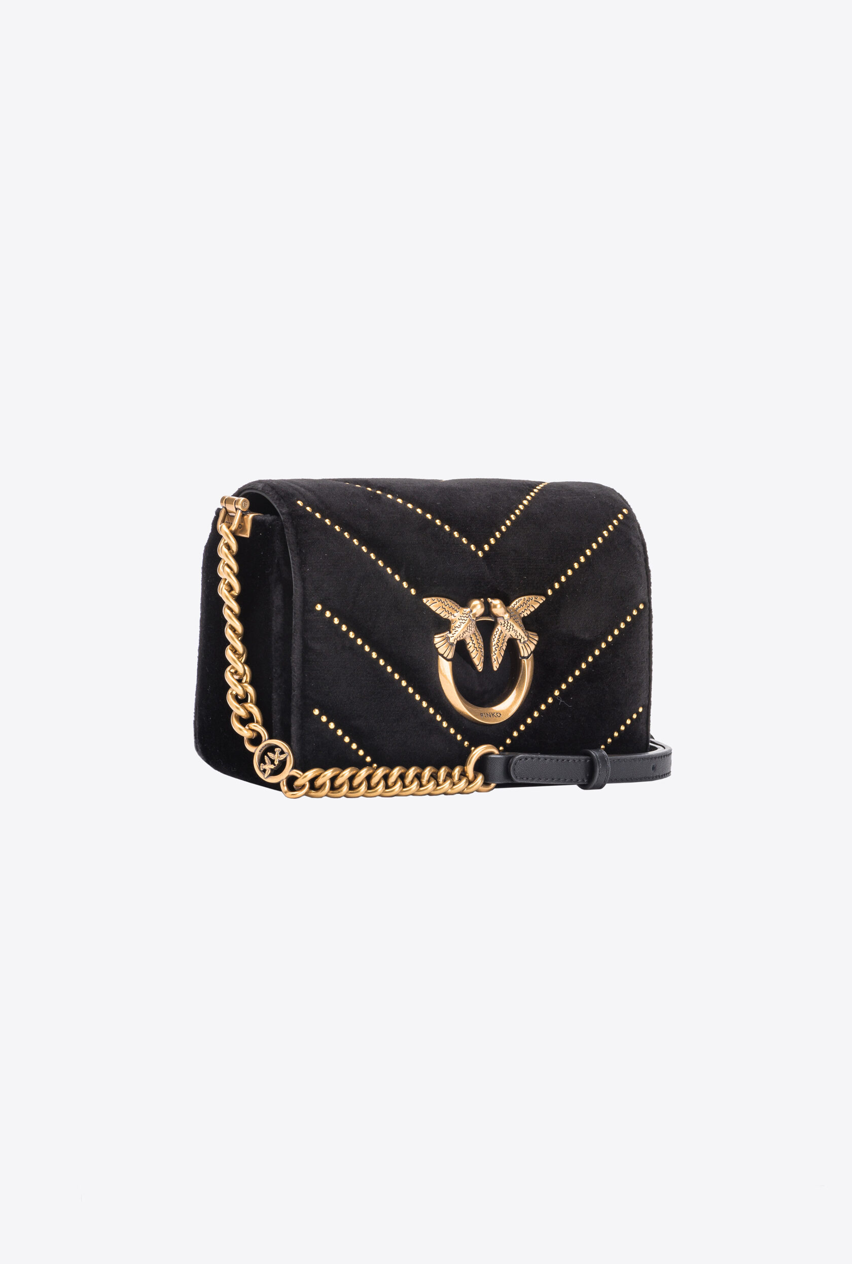MINI LOVE BAG CLICK IN VELVET WITH STUDS — black