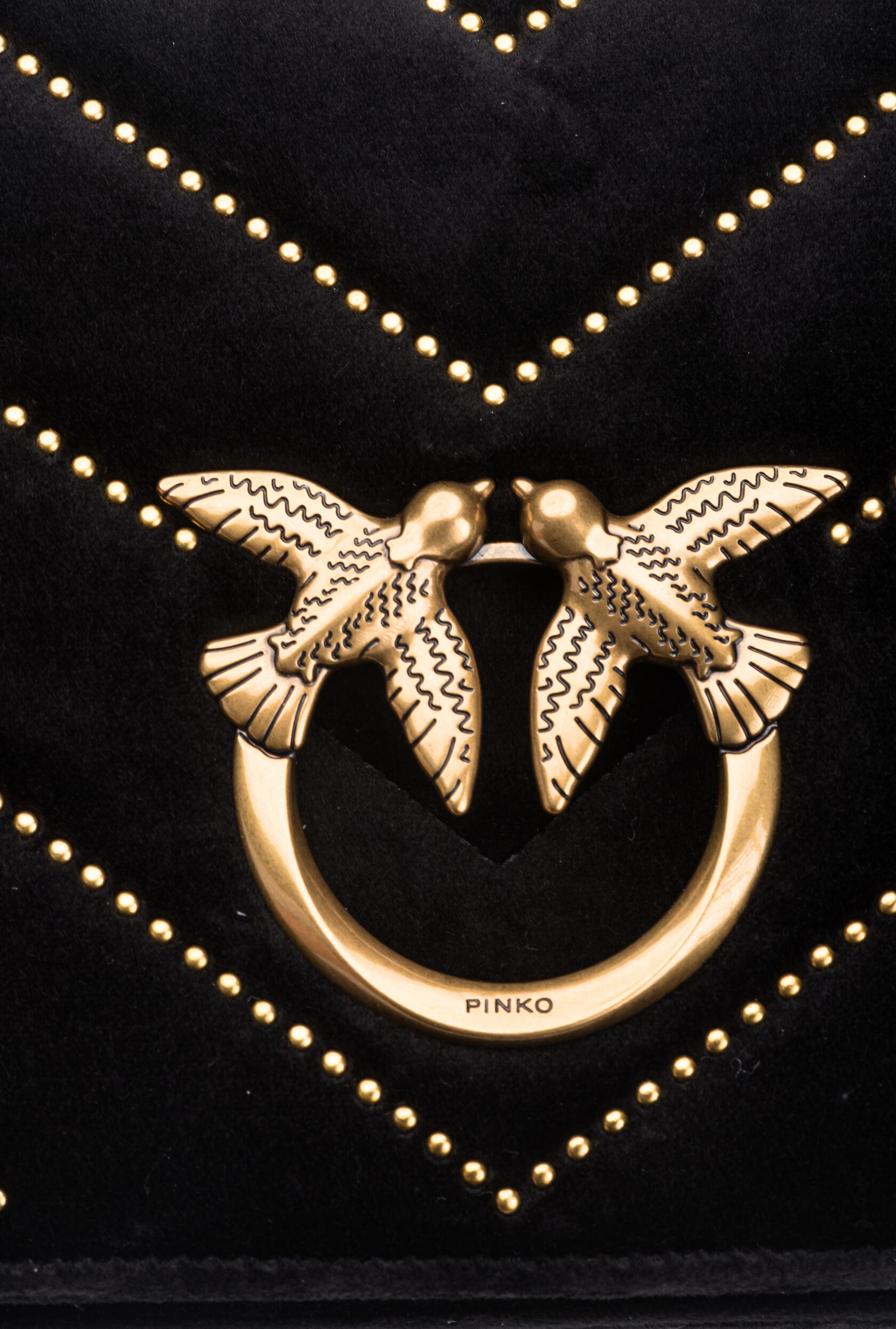 Сумка Mini Love Bag Click из бархата отличается стеганым шевронным узором с отделкой миниатюрными заклепками. Застежку на потайную кнопку украшает легендарная пряжка Love Birds Diamond Cut с декоративным вырезом, выполненная из металла с гальваническим покрытием цвета античного золота. Внутреннее отделение на подкладке из микрофибры с плоским карманом из кожи. Плечевой ремень представляет собой комбинацию классической металлической цепочки с круглыми звеньями и практичного регулируемого наплечника из кожи. Активируй свою сумку PINKO: поднеси смартфон к вышитому на задней стенке логотипу Love Birds, чтобы проверить подлинность изделия и получить доступ к персонализированным функциям!