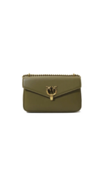 Сумка женская Mini Cupido Bag из натуральной телячьей кожи, отличается заостренным клапаном и застежкой на пряжку Love Birds Diamond Cut, выполненную из металла с гальваническим покрытием. Внутреннее отделение на подкладке из микрофибры дополнено карманом-перегородкой. Плечевой ремень представляет собой комбинацию классической металлической цепочки с круглыми звеньями и регулируемого наплечника из кожи.