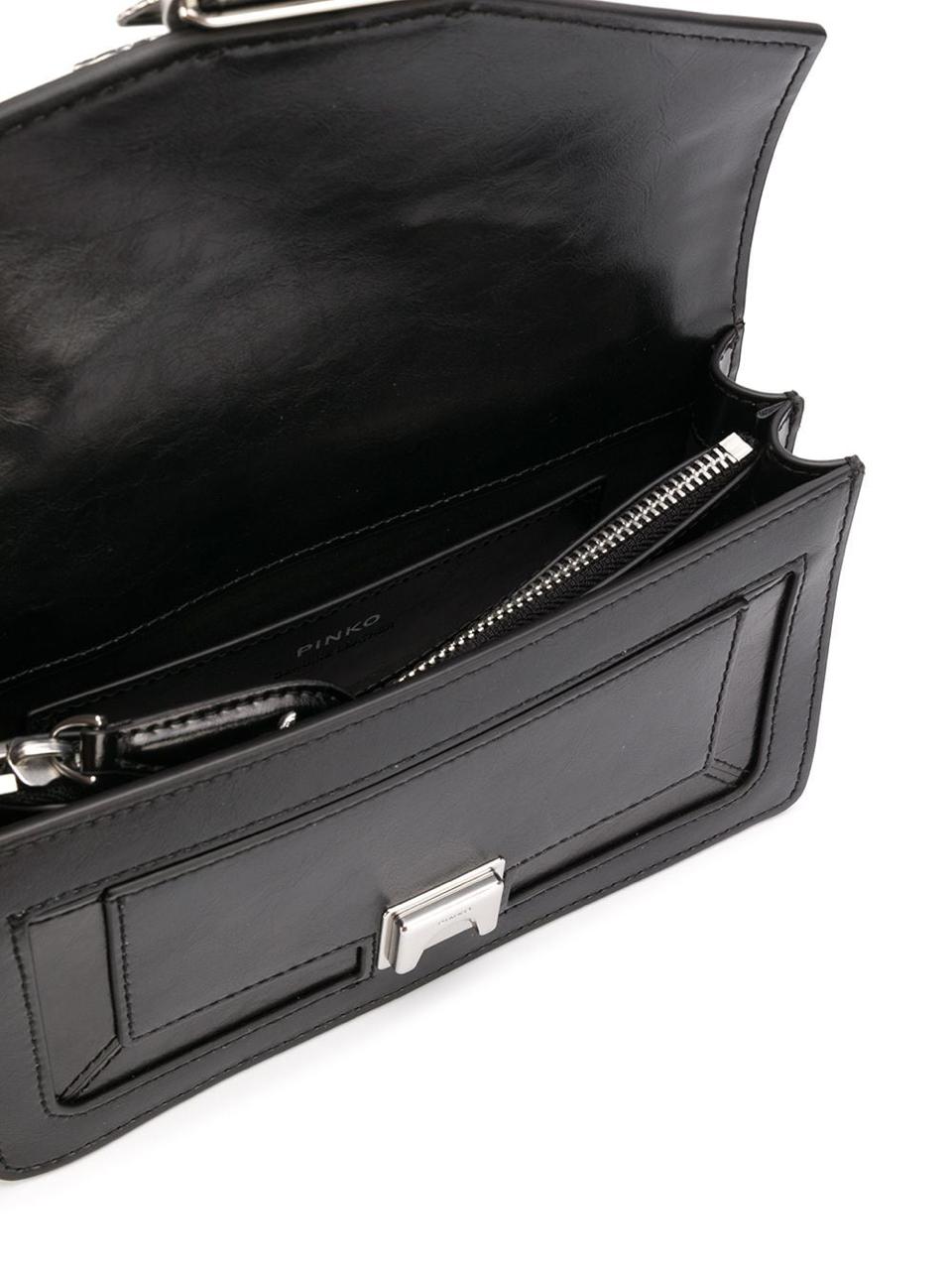 Сумка Mini Love Bag из кожи, с клапаном украшенным бахромой из мини-цепочек и полукруглыми заклепками. Застежка с кожаным ремнем-обманкой дополнена легендарной металлической пряжкой с ласточками Love Birds. Внутри сумка обшита подкладкой из микрофибры, разделена карманом-перегородкой на молнии и имеет плоский карман из кожи. Плечевой ремень длиной 110 см представляет собой комбинацию классической металлической цепочки с круглыми звеньями и практичного наплечника из кожи наппа.