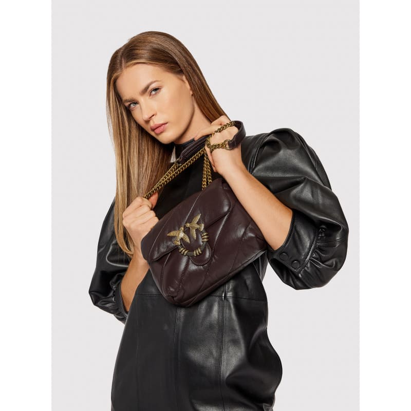 Мини-сумка Love Bag Puff из мягкой кожи наппа с крупным диагональным стеганым узором. Застежка дополнена легендарной пряжкой Love Birds Diamond Cut из металла с гальваническим покрытием цвета античного золота и спиралевидными деталями. Внутреннее отделение на подкладке из микрофибры включает карман-перегородку на молнии и плоский карман. Плечевой ремень длиной 110 см представляет собой комбинацию классической металлической цепочки с круглыми звеньями и практичного наплечника из кожи наппа.