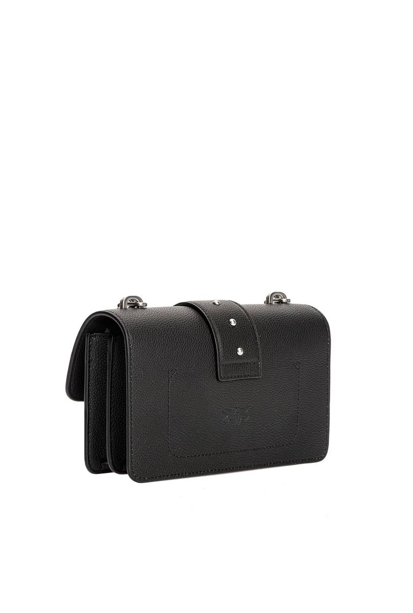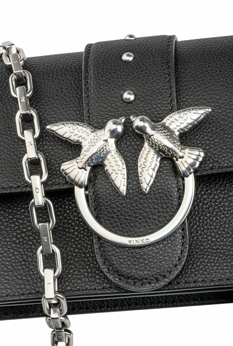 Сумка Мини Love Bag из кожи с разбивкой в барабане. Застежка с кожаным ремнем-обманкой c маленькими металлическими заклепками дополнена легендарной пряжкой из металла с ласточками Love Birds. Внутри сумка обшита подкладкой из микрофибры, снабжена карманом-перегородкой на молнии с подвеской, украшенной фирменным декором-заклепкой в виде ласточки, и кожаным карманом на стенке. Плечевой ремень длиной 110 см представляет собой комбинацию фирменной металлической цепочки PINKO нового типа и практичного кожаного наплечника. Проверьте подлинность своей Love Bag при помощи особого NFC-чипа или кода Certilogo, напечатанного на специальной бирке в форме сердечка.