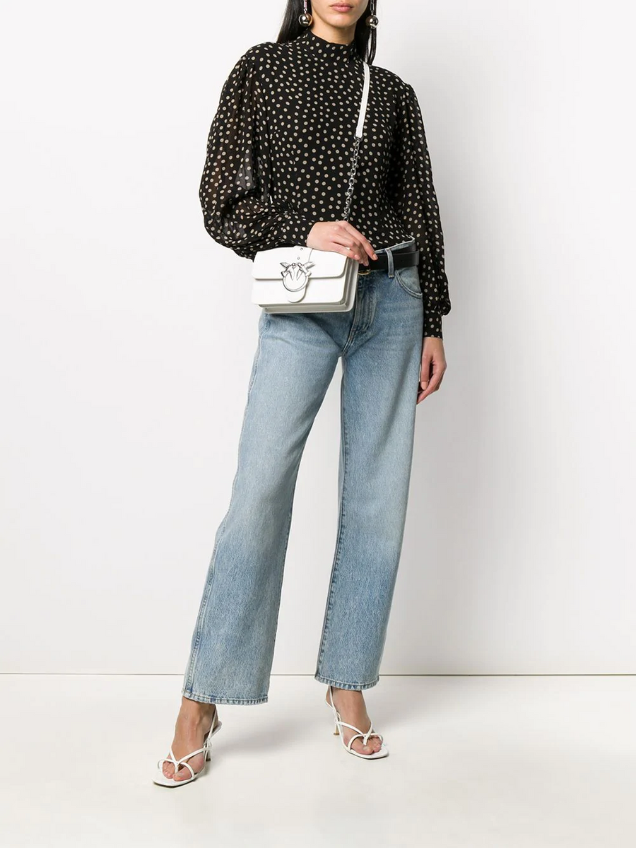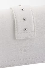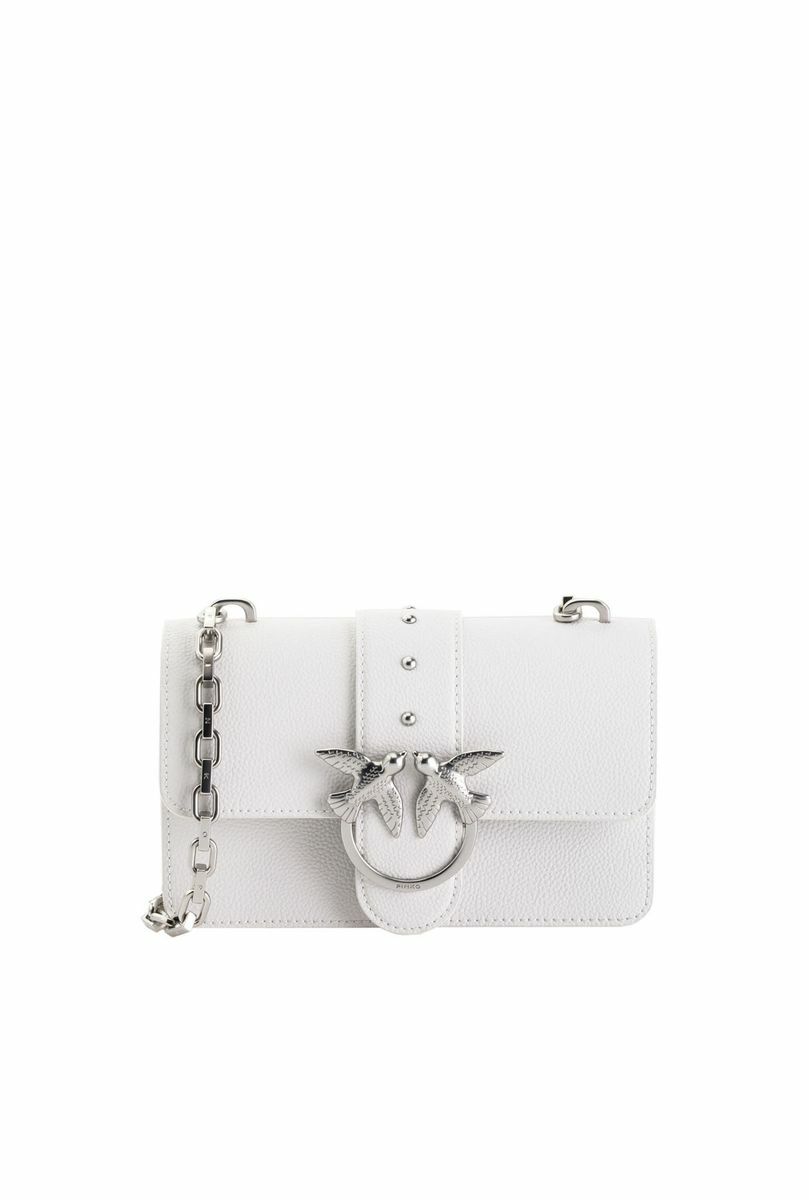 Сумка Mini Love Bag из кожи с разбивкой в барабане. Застежка с кожаным ремнем-обманкой c маленькими металлическими заклепками дополнена легендарной пряжкой из металла с ласточками Love Birds. Внутри сумка обшита подкладкой из микрофибры, снабжена карманом-перегородкой на молнии с подвеской, украшенной фирменным декором-заклепкой в виде ласточки, и кожаным карманом на стенке. Плечевой ремень длиной 110 см представляет собой комбинацию фирменной металлической цепочки PINKO нового типа и практичного кожаного наплечника. Проверьте подлинность своей Love Bag при помощи особого NFC-чипа или кода Certilogo, напечатанного на специальной бирке в форме сердечка.