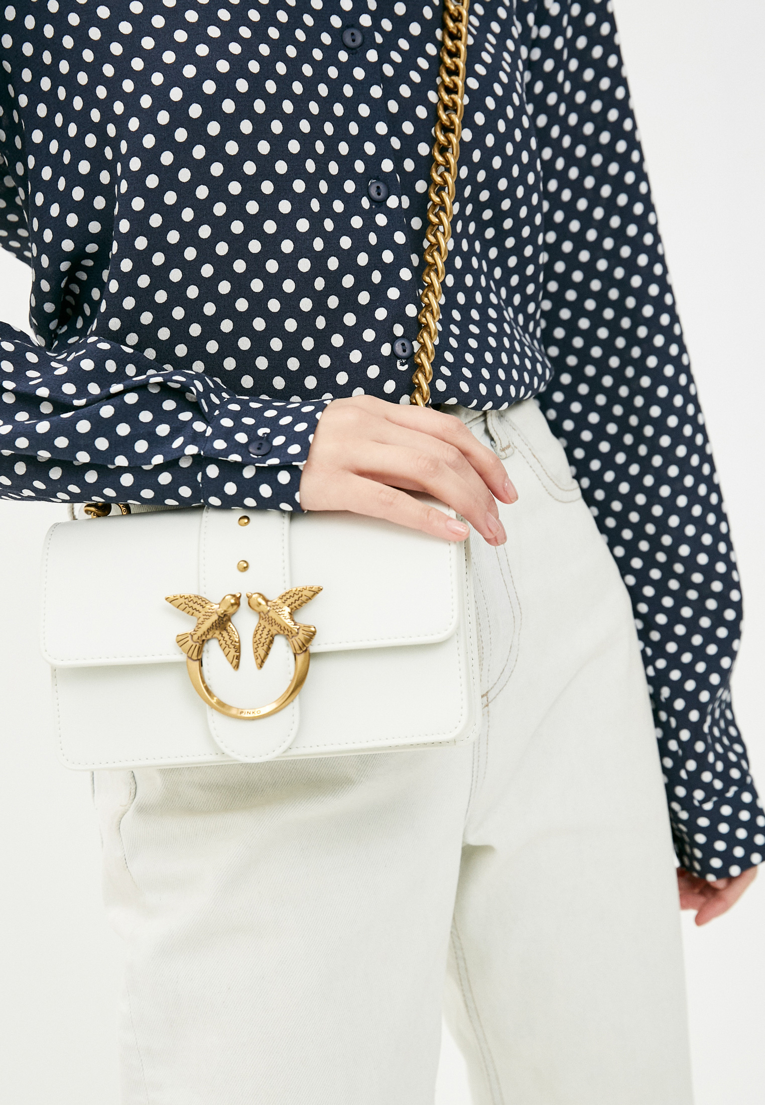Сумка Love Bag из мягкой шелковистой кожи. Застежка с кожаным фальш-ремнем и маленькими металлическими заклепками снабжена легендарной пряжкой из металла с ласточками Love Birds. Внутри сумка обшита подкладкой из микрофибры и снабжена карманом-перегородкой на молнии с подвеской, украшенной фирменным декором-заклепкой в виде ласточки, и кожаным карманом на стенке. Металлический ремешок-цепочка имеет длину 110 см. Проверьте подлинность своей Love Bag при помощи особого NFC-чипа Certilogo.