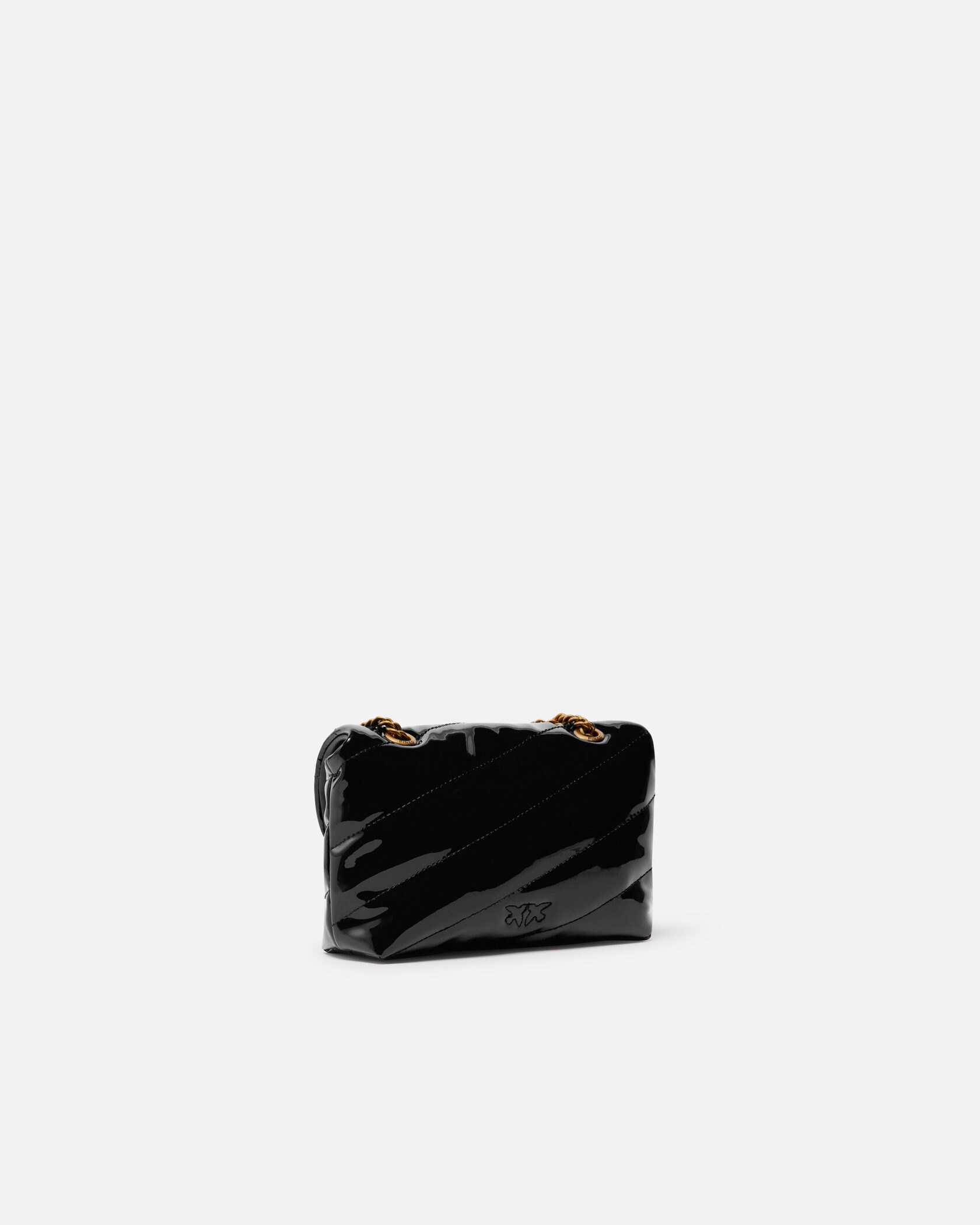 PATENT MINI LOVE BAG PUFF CROSSBODY BAG — black