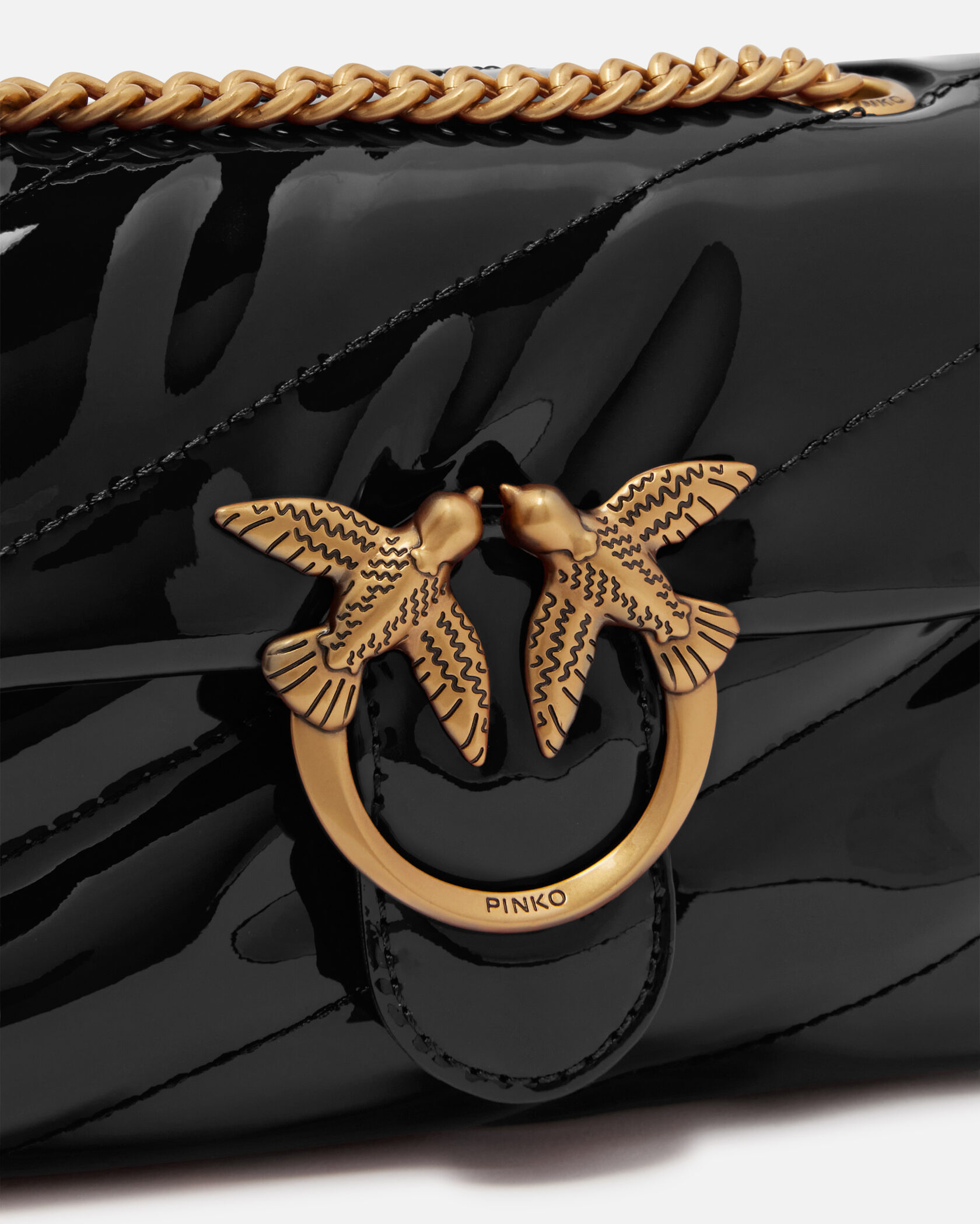 Маленькая сумка Love Bag Puff из лакированной кожи с характерной мягкой формой, созданной за счет стеганого узора. Эффектный материал с лакированной поверхностью идеально подходит для придания оригинальности повседневным образам и даже идеально дополняет вечерние наряды. Застегивается сумка на культовую металлическую пряжку Love Birds Diamond Cut с позолотой, а внутри есть практичный карман на молнии. Скользящий плечевой ремень сочетает в себе классическую металлическую цепочку и практичную накладку на плечо из ткани с эффектом кожи. Сумку можно носить через плечо или на плече, сложив цепочку вдвое. Активируйте свою сумку PINKO: проверьте подлинность своего изделия и получите персонализированный опыт, отсканировав вышивку Love Birds на задней стороне сумки с помощью смартфона!
