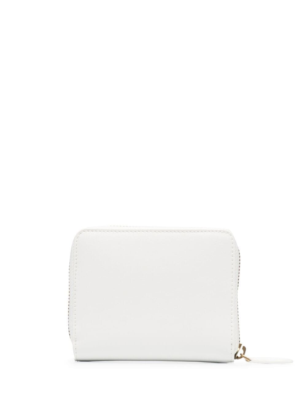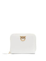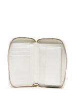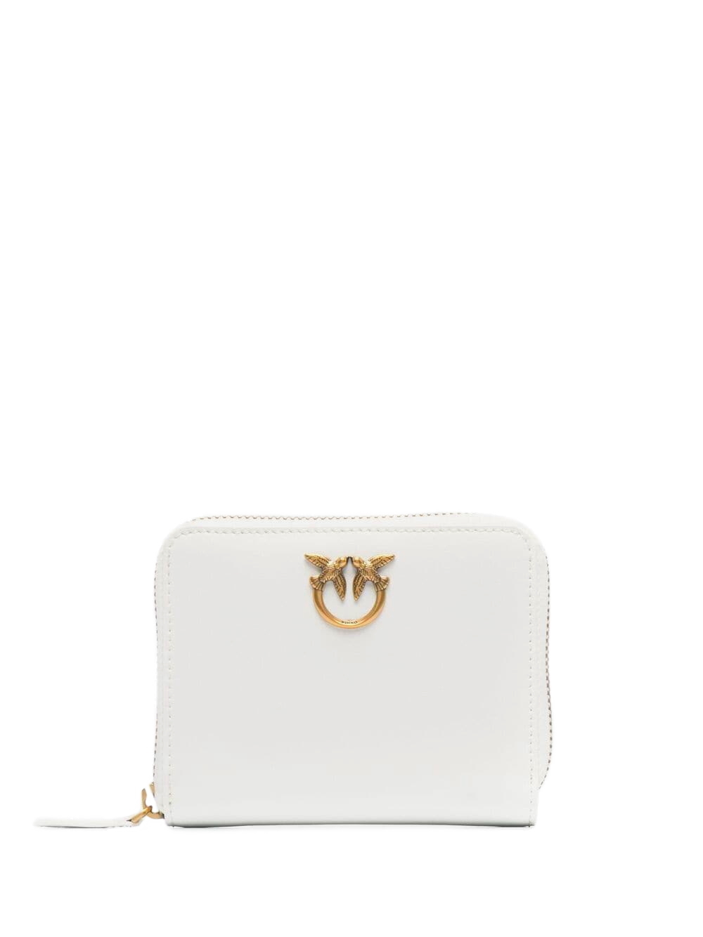 Золотистый металлический логотип, внутренние отделения для карт, отделение для купюр, отделение для монет и кожаная подкладка.